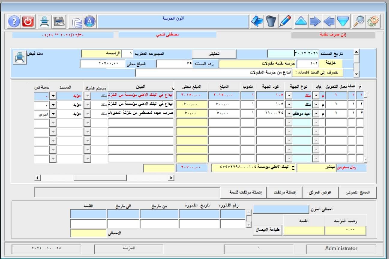 الفصل بين خزينه النقديه و خزينه الاوراق الماليه ( الشيكات )