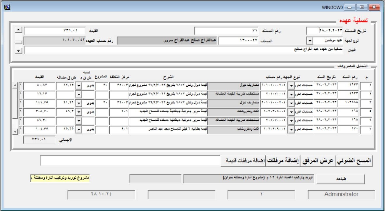 من المميزات ايضا فى نظام الخزينه و البنوك IBS من شركه ART التعامل المباشر مع العهد و تصفيتها و توجيهها الى الحسابات الخاصه بها و كذلك ربطها بمشروع او مركز تكلفه او الاثنين معا ان وجد مما يتيح تتبع للعهد و ارصدتها مع كل موظف ايضا تتبع للتحليلى بالمنصرف من عهده كل موظف